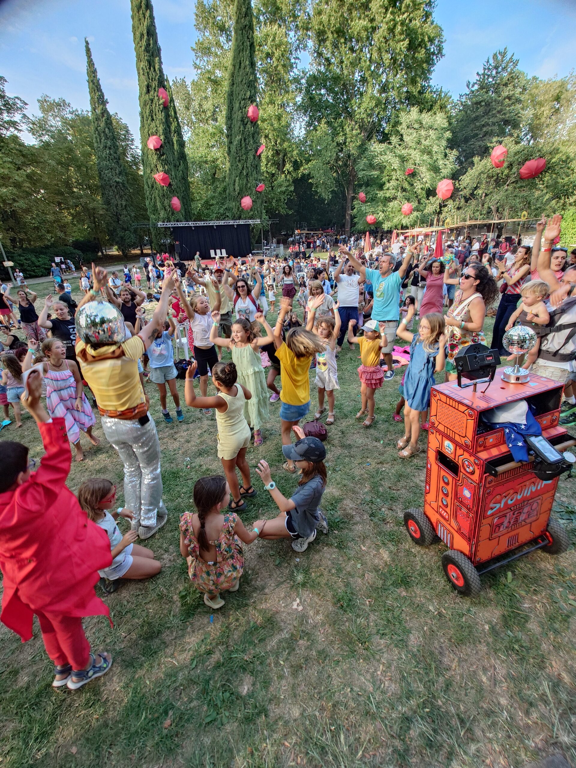 Retrouvez-le en déambulation, pour des chorégraphies loufoques, des flashmobs jubilatoires, des slows langoureux et des dancefloors improvisés